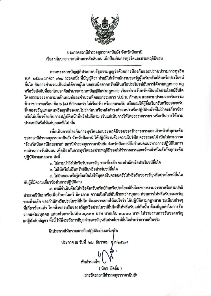 ประกาศสถานีตำรวจภูธรราตาปันยัง เรื่อง นโยบายต่อต้านการรับสินบน เพื่อป้องกันการทุจริตและประพฤติมิชอบ 27 ธันวาคม 2567 โดย DRadmin / ข่าวประชาสัมพันธ์ ประกาศสถานีตำรวจภูธรราตาปันยัง เรื่อง นโยบายต่อต้านการรับสินบน เพื่อป้องกันการทุจริตและประพฤติมิชอบ FacebookFacebookXXLINELine