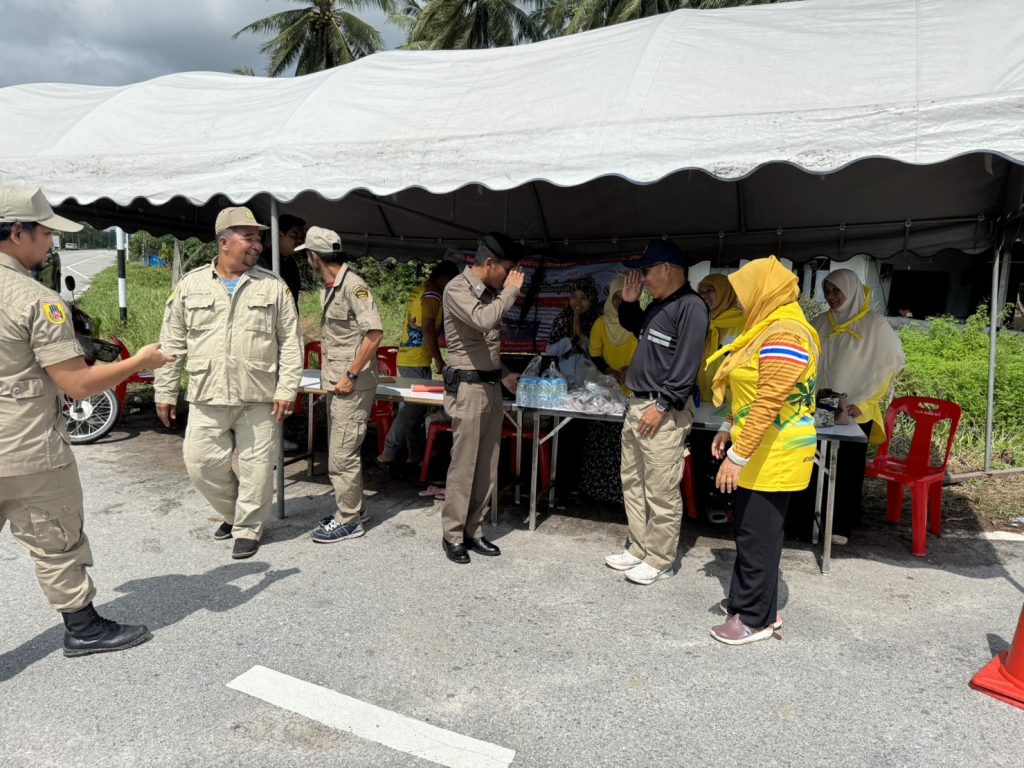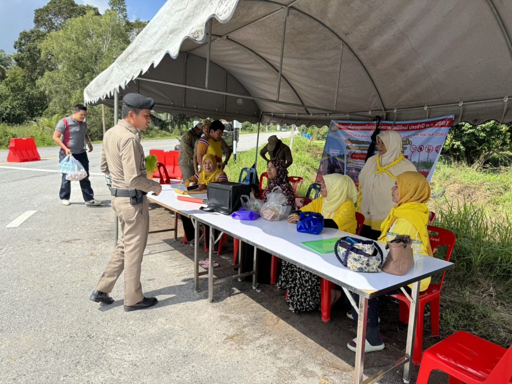 พ.ต.ต.นิกร ยึดลั่น สว.สภ.ราตาปันยัง ตรวจเยี่ยมจุดตรวจโครงการรณรงค์ป้องกันและลดอุบัติเหตุทางถนนช่วงเทศกาลปีใหม่ “ขับขี่ปลอดภัย เมืองไทยไร้อุบัติเหตุ” ระหว่างวันที่ 29 ธันวาคม 2566 – 4 มกราคม 2567 ณ จุดตรวจสี่เเยกบ้านสีปาย ม. 3 ต.ตาลีอายร์ อำเภอยะหริ่ง จังหวัดปัตตานี พร้อมทั้งได้มอบสิ่งของให้แก่เจ้าหน้าที่เพื่อเป็นขวัญกำลังใจในการปฏิบัติหน้าที่
