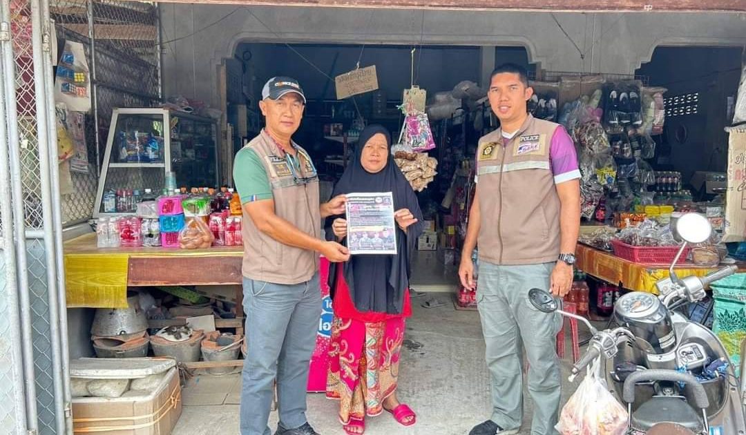 วันที่ 15 มี.ค. 2567 เวลา 11.00 น. พ.ต.ต.นิกร ยึดลั่น สว.สภ.ราตาปัน มอบหมายให้ ด.ต.มะยากี ดีเยาะผบ.หมู่(ป).สภ.ราตาปันยัง พร้อมชุดชุมชนและมวลชนสัมพันธ์ สภ.ราตาปันยัง 15 มีนาคม 2567 โดย DRadmin / ข่าวภารกิจผู้บังคับบัญชา พบปะเยี่ยมเยียนประชาชน พร้อมประชาสัมพันธ์แจกโพสเตอร์ ห้ามจุดพลุ-ประทัด-ห้ามจำหน่ายดอกไม้ไฟทุกชนิดในช่วงเดือนรอมฎอน ณ ม.4 ต.ราตาปันยัง อ.ยะหริ่ง จ.ปัตตานี เพื่อสร้างความสัมพันที่ดีระหว่างเจ้าหน้าที่ตำรวจกับประชาชนในพื้นที่รับผิดชอบ FacebookFacebookXXLINELine