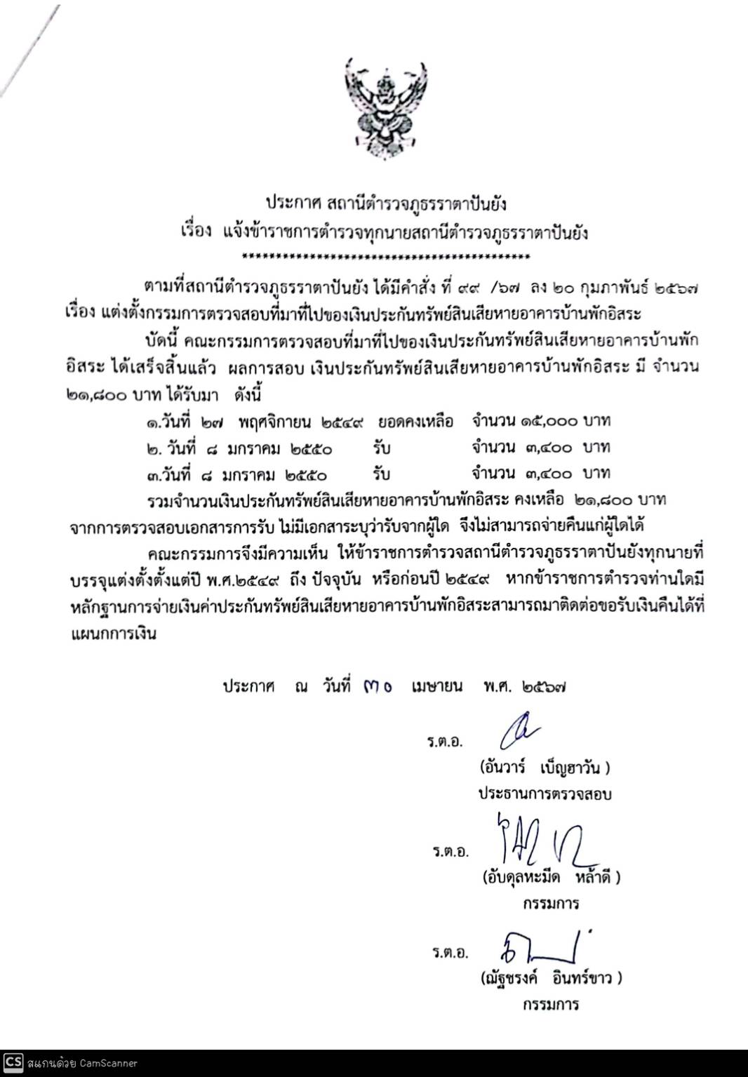 แจ้งประชาสัมพันธ์ ข้าราชการตำรวจ สถานีตำรวจภูธรราตาปันยัง ทุกนาย ตามที่ สถานีตำรวจภูธรราตาปันยัง ได้
